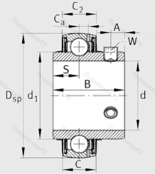 Радиальное шариковое однорядное тело, размещающееся в чугунном корпусе с парой усиливающих колец и внутренней шиной увеличенной ширины. Наружная обойма – сферической либо цилиндрической формы. Для гашения вибраций и шумности может устанавливаться наружное резиновое демпфирующее усиление.