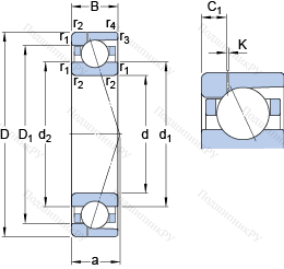 | Диаметр шарика | Dw | 34.925 | mm | |